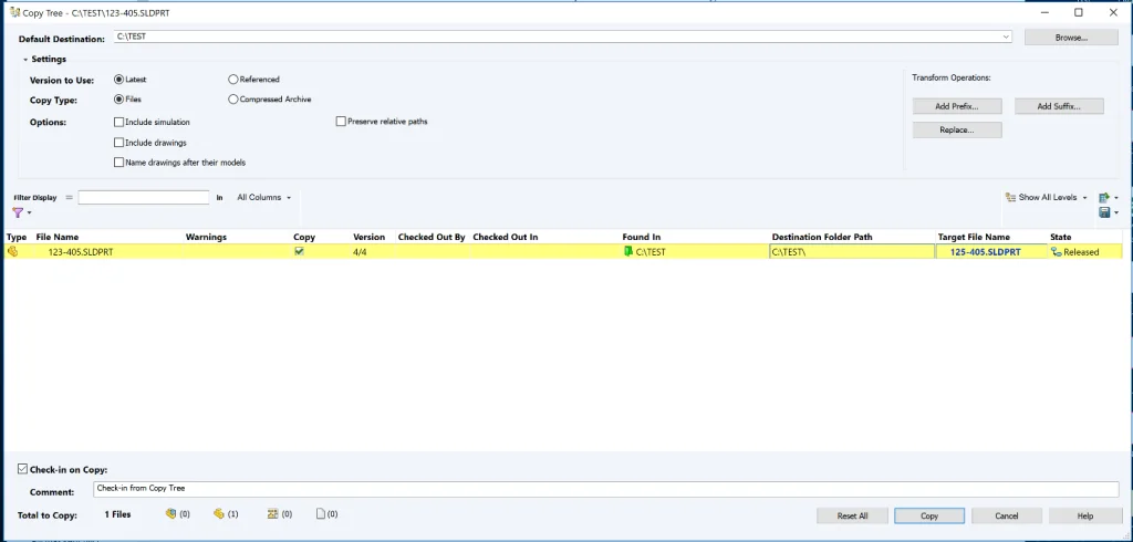 Existing vault files can still be copied successfully, with the above vault changes, through Save As in SOLIDWORKS or PDM Copy Tree, it is just a matter of when the revision variable clears depending on the method being used. The vault is now optimized for proper clearing of metadata to satisfy the given workflow conditions and is independent of whether Save As in SOLIDWORKS or PDM Copy Tree is used.