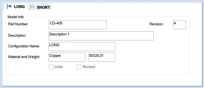 Default overwrites for the checkboxes and part number field can be used so when a Save As in SOLIDWORKS is performed, the default values are reset and not carried over: