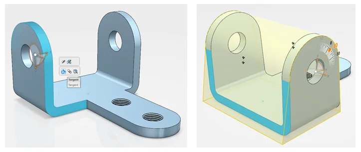 Performing more complex edits is just as simple. Perhaps you need to change the tabs to be angled. By adding direct edit constraints, you can easily control the editing behavior. When the constraints are no longer required, you can hide or permanently delete them.