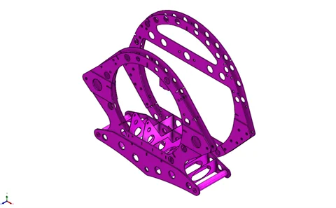 One of the big changes we made extended the roll cage to the rear and attach it to the differential housing making it into a complete chassis. This approach makes the racer safer, stiffens the chassis and reduces the number of aluminum members and the associated welding. The reduction in the amount of welding was a secondary benefit and will help simplify the fixturing needed for the welding process. Even though each aluminum member is self fixturing using tabs and slots there will still be a need to hold members together while welding is accomplished.