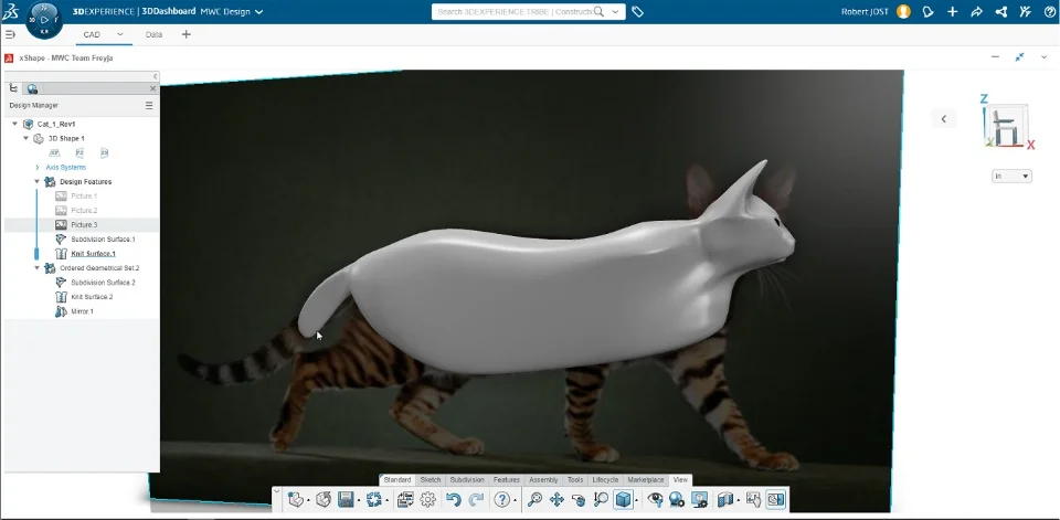 For Rob, not only was this a chance to make something new, it was also a chance to test the limits of the Sub-D modeling solution found in 3D Sculptor, xShape. Rob is an expert SOLIDWORKS user, but he knew the next-generation, browser-based tool xShape was the right call. Trying to model something organic like a cat in a parametric modeling tool like SOLIDWORKS would be a really lengthy process with a very long feature tree. Rob said, “I needed something to more or less sculpt the shape, rather than create it from sketches. xShape was the only obvious tool for me. And,” he added, “as someone who works on xShape, it was a great opportunity to test and push the boundaries of the software.”