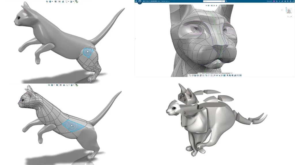 Rob had never dreamed of making a cat in CAD software before. Using the Sub-D tool made him to think differently about the design compared to how he would use parametric tools. “Once I got my brain focused on how to make a cat, the tools were all there in xShape,” he said. “To be honest, it was a lot of pushing and pulling and sculpting, and then some modifying. I only used about 20 percent of the tools we have available in xShape and it worked great.”