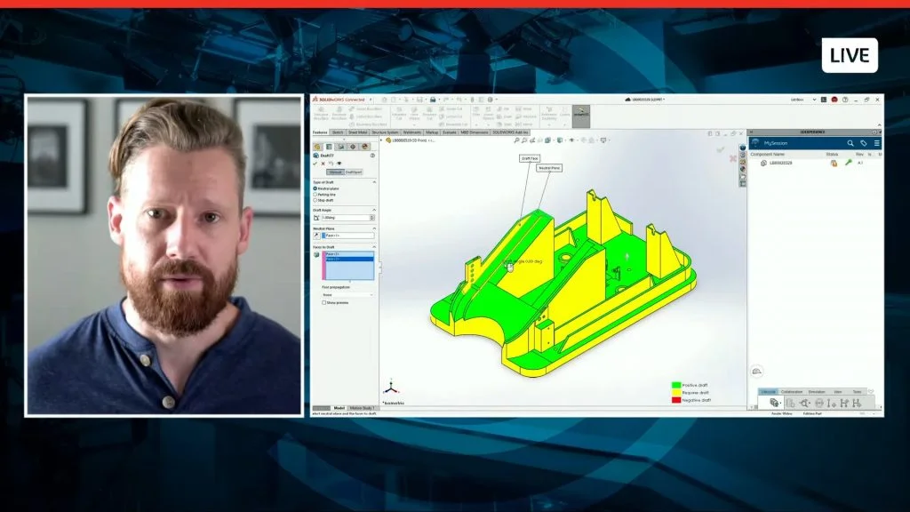 You’ll see that just like in SOLIDWORKS 3D CAD you’ve used for years now, we can use tools like Draft Analysis within 3DEXPERIENCE SOLIDWORKS to ensure our designs can be removed from their eventual molds.