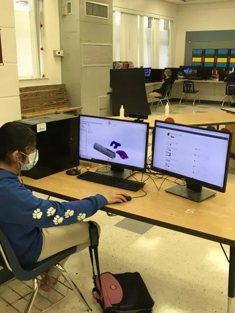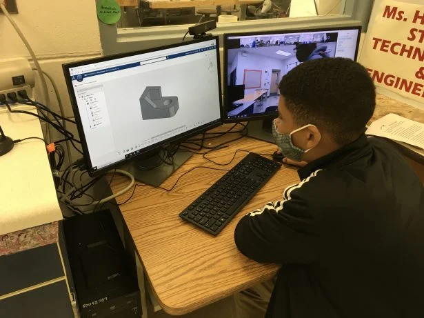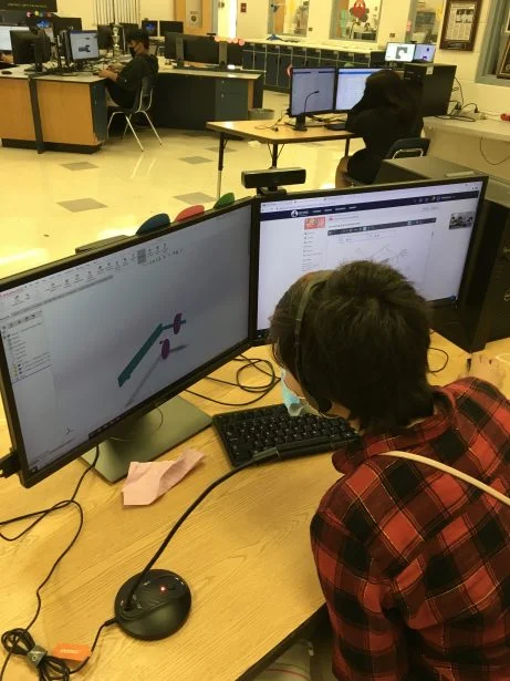 Hamilton almost immediately got the 3DEXPERIENCE platform to deal with the remote learning challenges brought about by the Covid-19 pandemic. She taught three classes online and three classes in person. She set up her computer in the woodshop, which has big windows that face the student computer lab. This created a socially distanced teaching environment where she could feel safe with the kids.