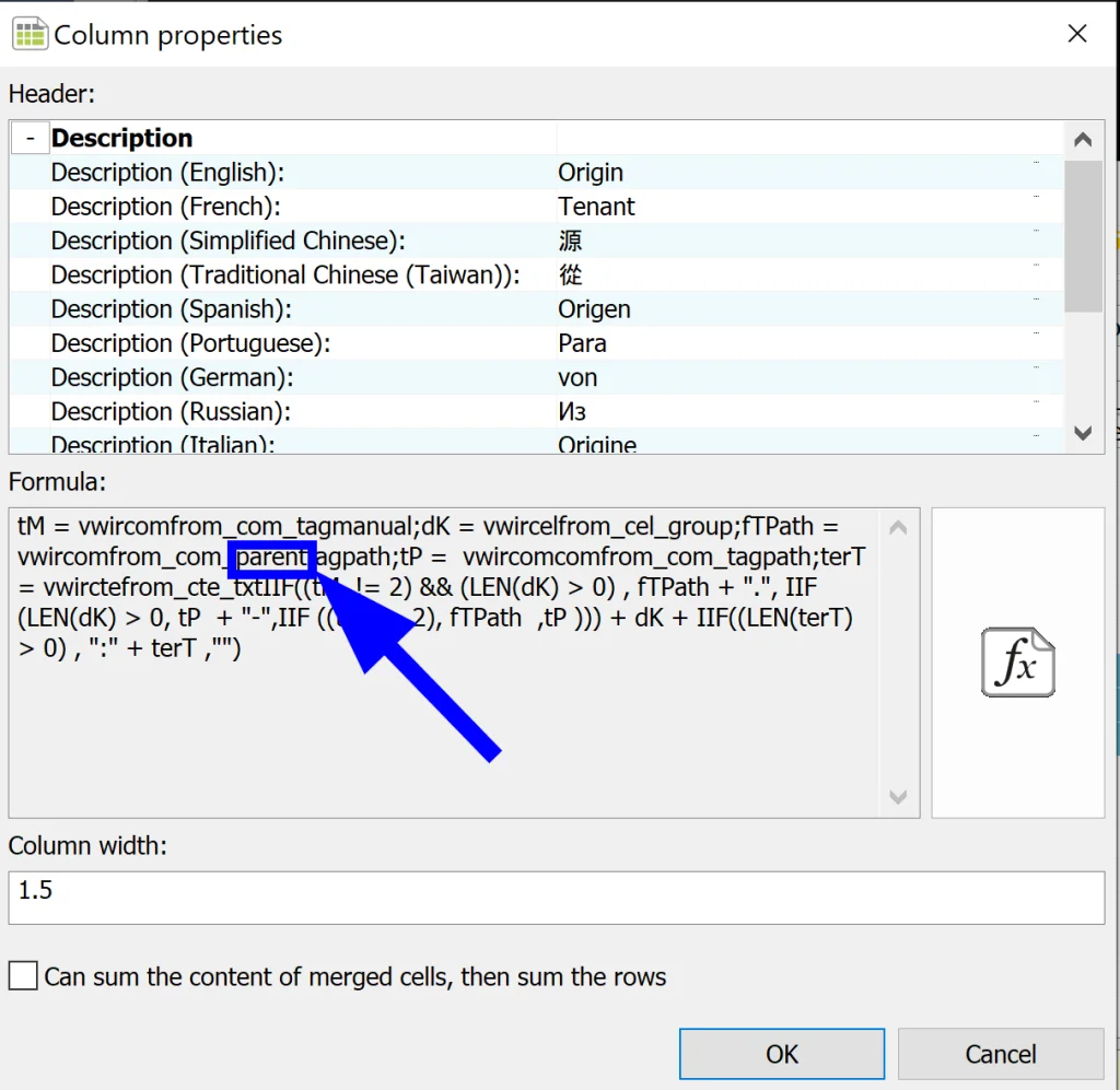 Jumping back into SOLIDWORKS Electrical 2D, all we need to do is go to Project > Reports and add the List of Wires by Line Style report from the standard reports list if it doesn’t already exist in our project. From here we can modify the report to suit our needs. I ended up modifying the formula for the From/To information so that it wouldn’t include the path of each component (F1 L1 …). To do this, all we need to do is modify the formula and add “parent” to one of the variables as can be seen below: