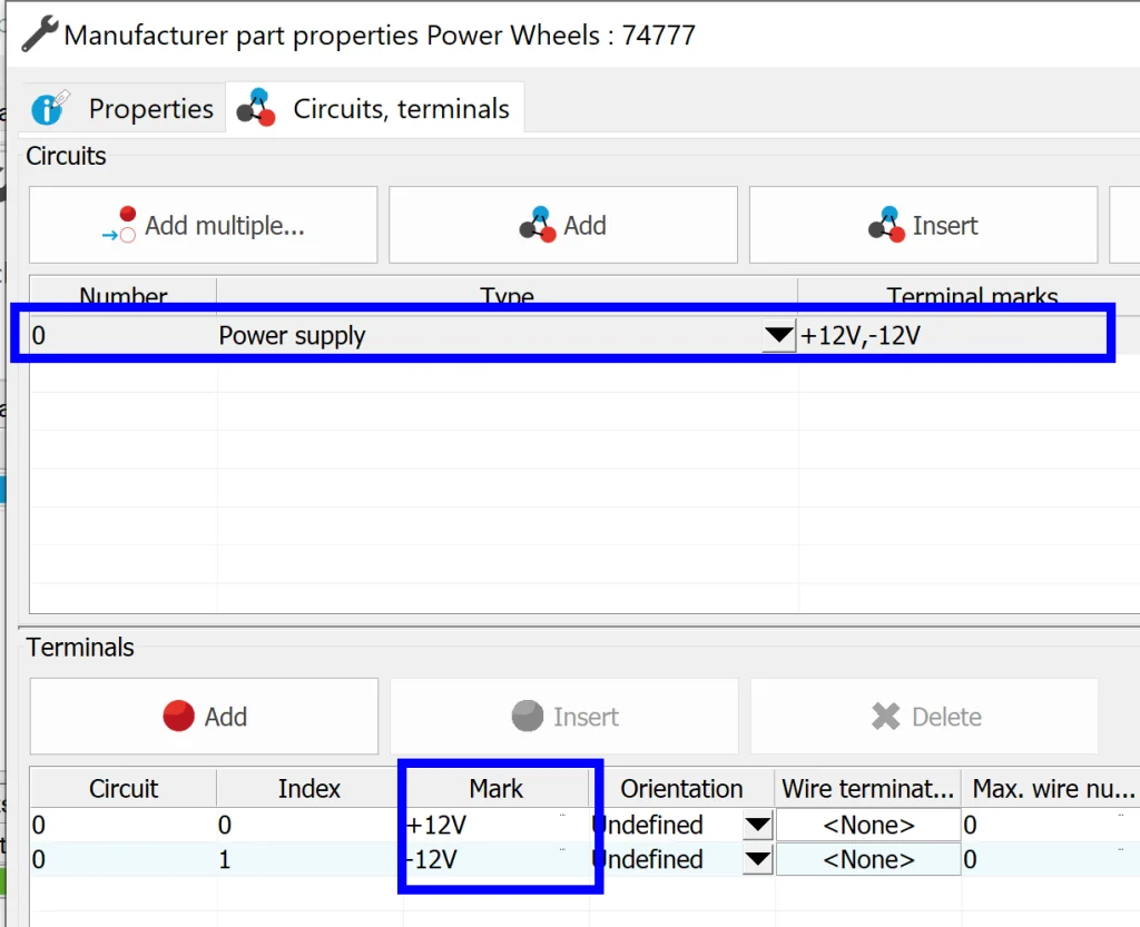 The most important thing to remember here is that our part has circuits and terminals that need to be added in addition to Reference and Manufacturer. Technically we don’t have to add them now, but remember – we get to re-use this work, so I opted to do it upfront.