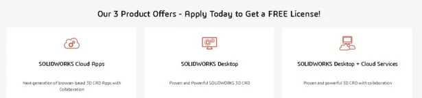 Here you can apply for SOLIDWORKS Cloud Apps (100% Browser Based) for MAC, Tablet and PC, SOLIDWORKS Desktop (SOLIDWORKS 3D CAD for PC), or SOLIDWORKS Desktop + Cloud Services, providing free cloud storage for your robot models and documents.