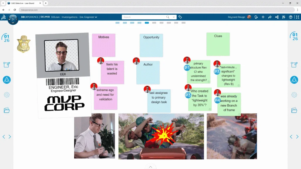 This year, the team put the audience’s mystery-solving expertise to the test by following a team of engineers at a fictitious company, MVP Corp, who had been accused of sabotage of a chassis design. In case you missed it, you can watch the entire demo here which is highly recommended!