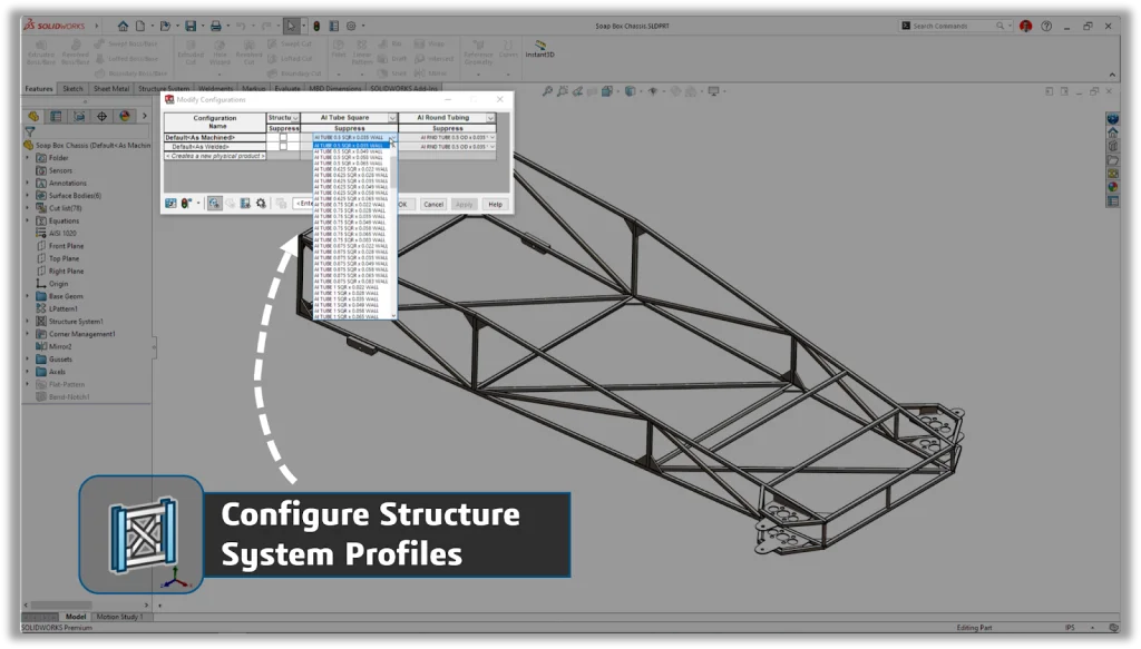 Eric’s ‘superior’ design to the chassis in question has been modeled in a very efficient manner and with great design intent, but will it stand up to the stress and harmonics of the race track? Andy Analyst has his doubts and decides to jump right in to validate the new chassis and show off a few enhancements in SOLIDWORKS Simulation.