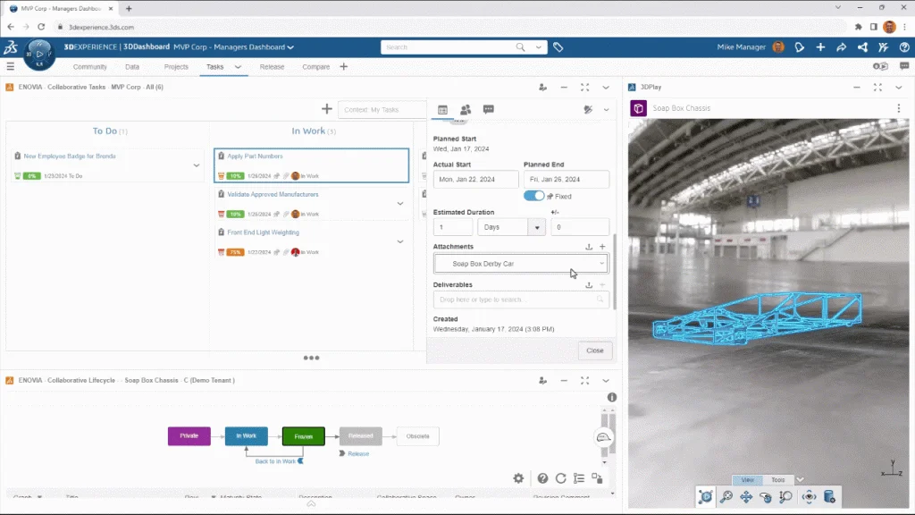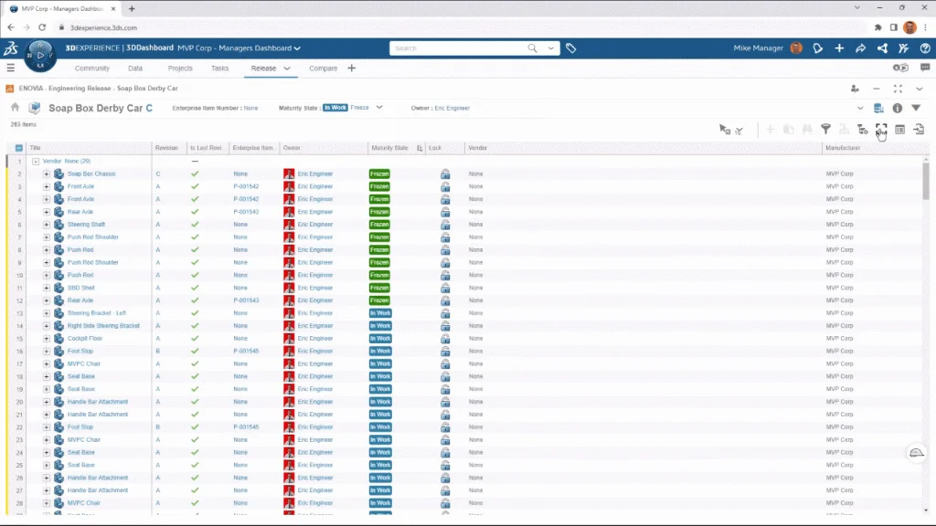 Managing the bill of materials and determining what goes to manufacturing after release falls under the responsibility of Mike Manager. However, upon discovering a few irregularities in the product structure, the weight of culpability rests squarely on Mike’s shoulders. It is now upon him to demonstrate his innocence to the team, and luckily for Mike, the 3DEXPERIENCE platform can help showcase this through complete traceability in all of the team’s actions.
