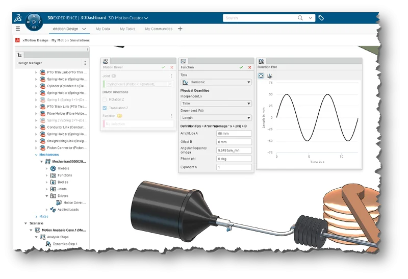 The latest update of 3D Motion Creator for kinematic analysis offers more ways to better visualize and understand how your models will behave in the real world. The R2023x FD01 release features 2D plot view capability for function shapes, 3D visualization of applied loads, and the ability to use native SOLIDWORKS mates and more.