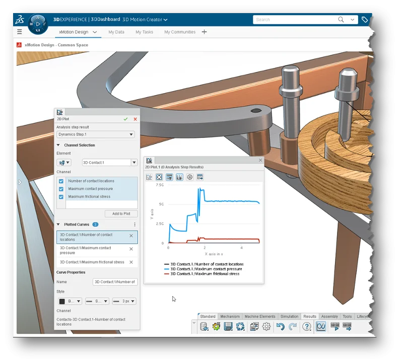 Analyze models that include 3D contact situations with confidence and robustness with the ability to review maximum contact pressure and friction stress occurring in 2D plots.