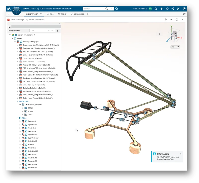 This is a huge time-saver. SOLIDWORKS users can now use native SOLIDWORKS mates in 3D Motion Creator with the new Mate Import command, so you do not have to recreate the mates. When you import the mates, they will automatically be converted to joints when you create your mechanism.