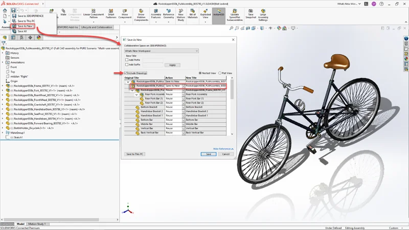 Duplicate a drawing in just one step with the ability to include reference drawings when using Save as New for assemblies or parts.
