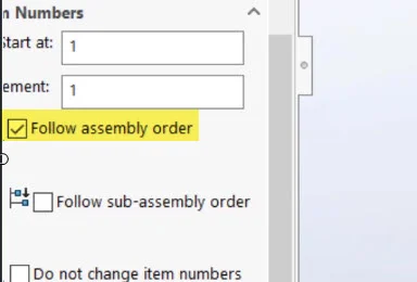 You only need to make sure that “Follow assembly order” is checked, and your BOM should match up nicely.