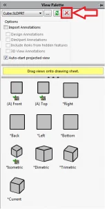 Even though the drawing views have been deleted, we may find that the part or assembly remains in the View Palette! Remember, ‘View Palette’ views are just like regular model views, however the ‘View Palette’ views do not show in the drawing sheet until they are inserted as drawing views!