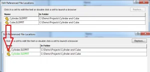 - Double-click the unwanted file reference to replace it with a one you would like to use (in this case we replace Cube with Cylinder again, so they merge into a single reference!)