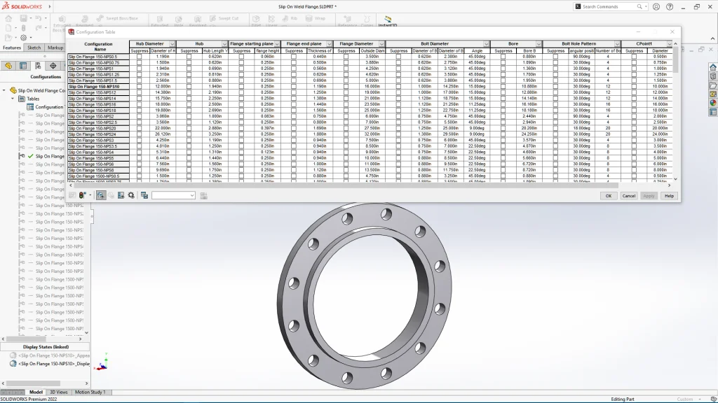 Configuration tables eliminate the need for Excel or similar applications to store configuration parameters. Created automatically when a part or assembly has multiple configurations, configuration tables make it easy to modify configuration parameters for parts and assemblies.