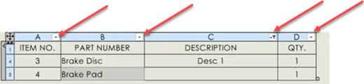 - BOM Filter in Drawings – Similar to Excel, our BOM tables now have “filters” at the top of each column.