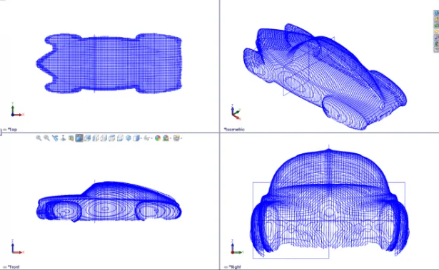 Now in order to know if the metal has been shaped correctly the piece is laid on a wooded “buck”. The buck, as shown below, is really the first step in creating a car body. It was created from the scanned data from the plaster model as shown in this image: