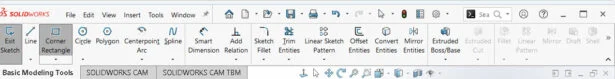 When first learning about 3D computer aided design (CAD), students concentrate on simple sketch tools. The most common sketch tools are Line, Rectangle and Circle. The Simplified Interface shows the most common tools – compared to the Default Interface. After you create the 2D profile, the next step is to use Smart Dimension and Add Relations to create a fully defined sketch.