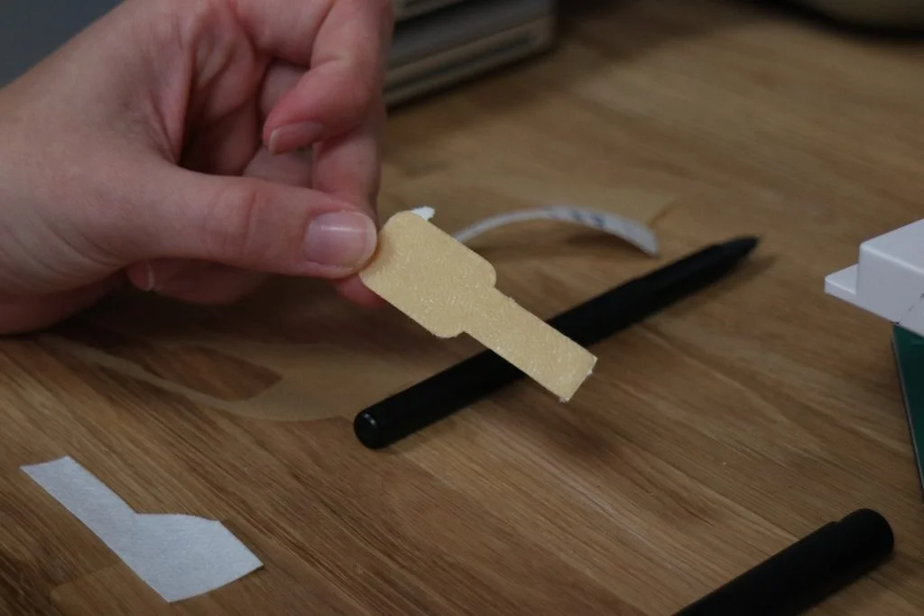 The delicate infants in the Neonatal Intensive Care Unit (NICU) are often connected to tubing that provides oxygen and delivers nutrients. To prevent skin breakdown, nurses protect the infant’s skin from the tubing with layers of hand-cut medical grade silicone and cloth tape. The NICU infants are tiny and it is a challenge to cut the pieces small enough to fit the infant’s face and consistent enough to align the layers.