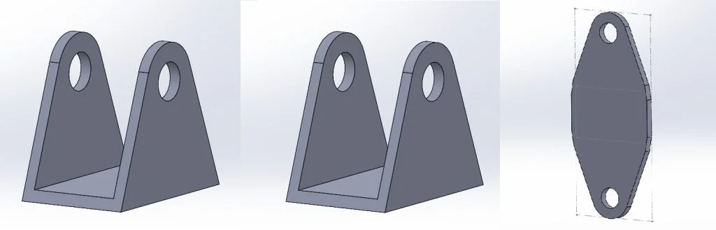 At this point I knew I needed to design some simple mounting points for the end of the suspension to bolt through. Again, I figured I’d challenge myself to use some basic sheet metal tools. I sketched out my part before using the extrude tool to add some length to the mounting channel before using another sketch and an extrude cut to remove some material and add some more shape into the design. From here SOLIDWORKS has some amazing tools to first convert this design into sheet metal form using the “convert to sheet metal” tool which allows you to specify the material gauge or sheet thickness, add bend points and adjust bend radius. This tool quickly allowed me to convert a 3D body into a piece of sheet metal which could be manufactured. SOLIDWORKS had another trick up its sleeve when it automatically processed this design into a flat pattern allowing me to export and save this as a DXF for cutting.