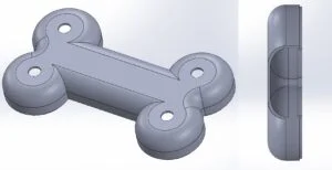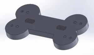 With my rough measurements in front of me it was time to get started with the design of the housing. To get started I created a new sketch in the top plane and sketched out the rough dimensions I had noted down as a starting point. From here I could get to work with the outline of the shape I wanted to create. As this was to be a soundboard for a dog, I wanted the outline of the housing to be bone shaped, as this design incorporated some symmetry lines, I would only need to sketch out ¼ of the design before mirroring to create the rest. I had setup the sketch to be about the origin center point and I got to work by sketching a vertical and horizontal construction line from this point, these would act as my lines of reference for the mirror command later in the process. I sketched out the required portion of the bone shape as large as required to encapsulate the components needed. From this point I added some dimensions to lock these lines into place before offsetting the sketch 2mm to create a second line slightly further out than the original sketch.