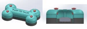 The first part of this project was to model up purchased components such as the PCB, battery pack and speaker modules along with the push buttons I’d be using. From here, I’d be able to create the housing or casing which I would 3D print to contain all the electronic components. As these components aren’t crucial to my design and we’re not doing electronic component design here I used “bluff” bodies to mock up the components within the assembly. A bluff body is basically the same overall external dimensions with the same mounting points as the full detailed component but much simpler to allow for faster creation of models.