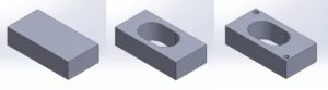 The speaker unit I used had an external size of 70 by 35 by 15mm, I started by creating a rectangle in a new sketch to match this size and extruding by the required height. I used the extrude cut command to create holes through the solid body where these would be required to mount. As the speaker unit had a certain portion which produced sound, I needed to create an area in the housing to allow the sound to escape through, to make this easier I created a new sketch of a circle in the same potion as the functional part of the speaker. I used the cut extrude command to remove this portion of the body which would make aligning this with any open area in the housing, I find that this a great method for aligning critical areas such as this much easier.