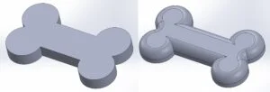 With the base piece done it was time to focus my energy on the upper lid section, I did a bit of a cheat code and copied the original sketch I had made for the base piece into a new part and pasted this onto the top plane. From here I extruded this 30mm before then using the inner line on this same sketch to cut a pocket upwards into this 27mm. To create more of a bone shape for the upper segment I added two 15mm radius fillets to the inner and outer edges which resulted in the below design!