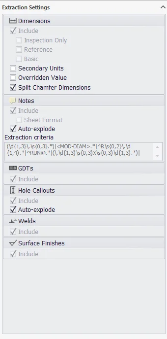 Additional options allow you to define if chamfer dimensions, notes or hole callout should be automatically separated in multiple characteristics.