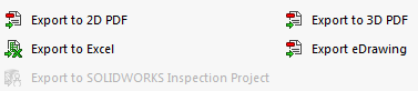 Once the inspection project is completed, you can generate a Microsoft® Excel report, a 2D PDF, a 3D PDF (if SOLIDWORKS MBD is available) or an eDrawing file.