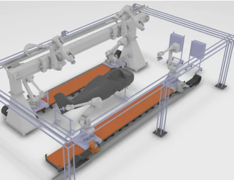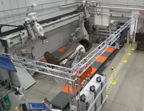 As expected I started off working mostly with the DELMIA Robotics tools. My first task was to create a calibrated and usable virtual twin of the Multi-Robotic Advanced Manufacturing cell in the NIAR robotics lab. This cell has 6 robots; 2 on a gantry and 4 on rails, making it more complex than the manufacturing cells typically designed in DELMIA. Due to the number of robots and the complexity of the cell I had to work with the R&D person responsible for developing the calibration tools to create a procedure that would allow us to calibrate all the robots to one world frame. Since I was fairly new to the company and also the world of manufacturing at the time I didn’t quite grasp the how big that task actually was at the time, but I learned a lot quickly and seeing 6 large industrial robots completing tasks I had created in the virtual world in the real world confirmed I was in a job I would love.