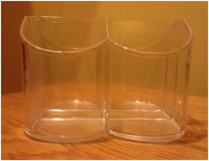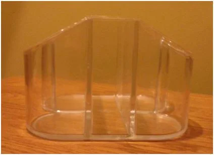 For an example, today we are going to use a part that is already been produced and reverse engineer the part. The part when we take a first look at it seems simple enough but there are many things to think about as we go about creating it. The part is a acrylic napkin and silverware holder, and below are some images of the part.
