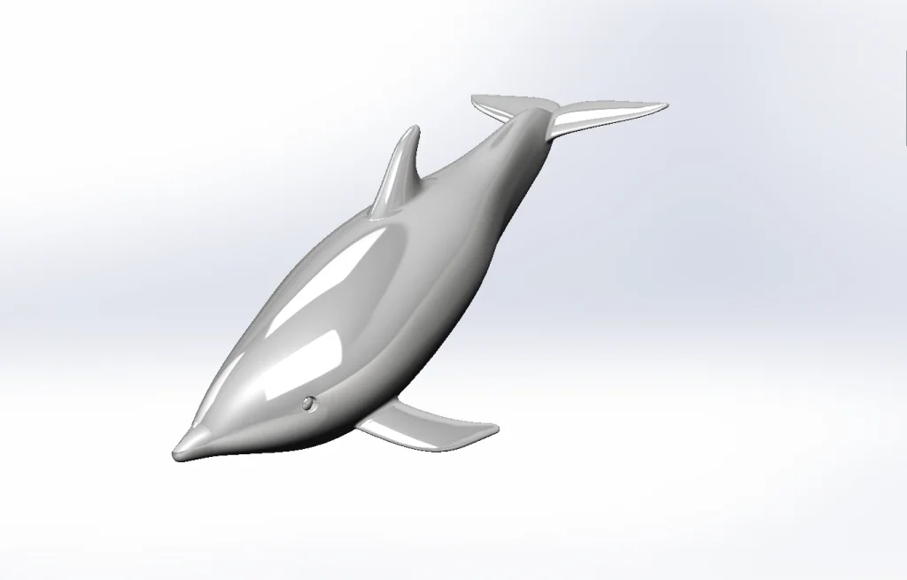 DownloadDolphin: This model demonstrates the use of some of the fundamental surface modeling techniques. It is modeled exclusively with surface body features. It has two sketch pictures to act as “napkin sketches”. There are two configurations with different poses created by a flex feature.There are multiple examples of surface boundaries, lofts and fills. There is an example of angled plane to create the side flippers. Time saving techniques are sprinkled throughout the part.