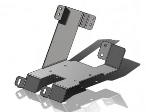 Mounting Bracket: This basic shape was created using the thin extrude feature in order to mimic sheet metal features. This method is used because it is easier to model this part with the thin feature extrudes than with the sheet metal features. It also means that the part is not locked down to one manufacturing method.