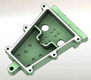 Simple Machine Part 2: This part is a machined part with mainly extruded bosses and extruded cuts. Added material using convert and offset entities to follow the profile feature outer boundaries.