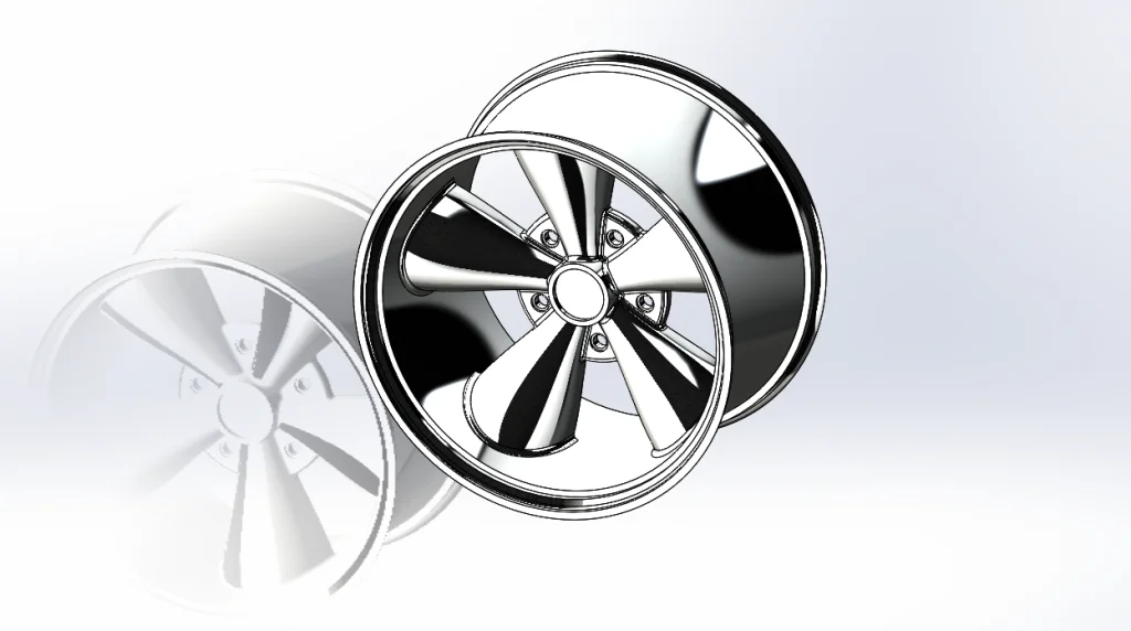 Simple Surface Part 6: The rim is a Revolved Thin Feature (Thin is an open section). This models demonstrates Hybrid Modeling (use of both solid and surface bodies to create geometry). The rim and hub are solid bodies. The spokes and center piece are surface bodies that will be turned into a solid and all three bodies will be combined into one solid. To learn more, check out Part 1, Part 2, Part 3, Part 4 and Part 5 of the Simple Surface Part Reviewer tutorial series!