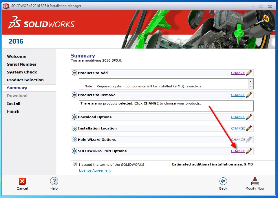 In either case, we can change this on the Summary screen of the installation manager. To do this, we need to click the CHANGE link. We then get the SOLIDWORKS PDM Client Options where we can pick our Client Type as well as Standard or Professional. Click “Back to Summary” and proceed with the rest of the installation as normal. If this was done the first time through the installation should be working and vault view creation will be as expected.