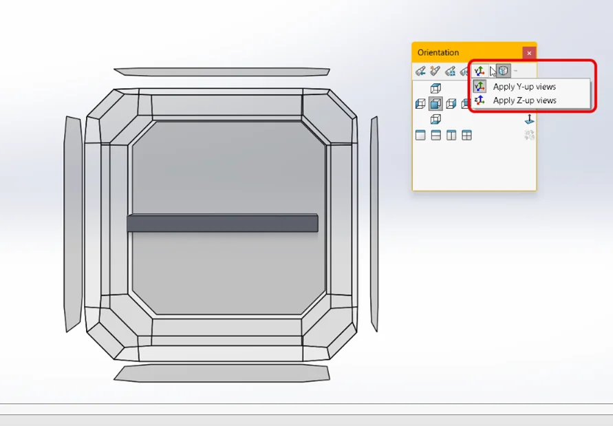 - Press Spacebar, and click Up Axis Flyout dropdown option in the orientation dialog.