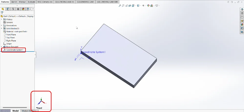 - Open the imported part with incorrect orientation in SOLIDWORKS.