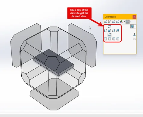 - The simplest way is to press middle button of the mouse and drag the mouse to change the orientation of the part.