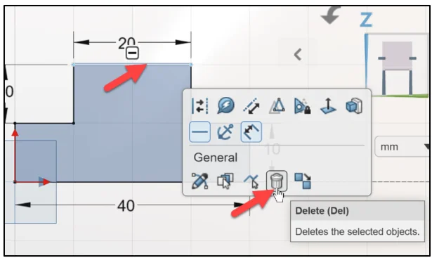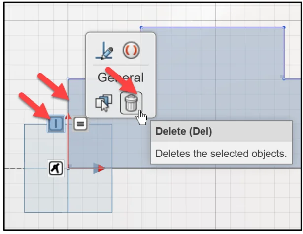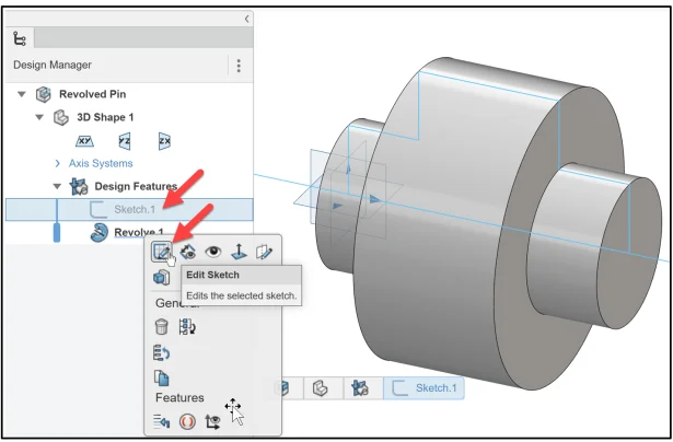 Right-Click Sketch.1 in the Design Manager. The General tools are displayed.