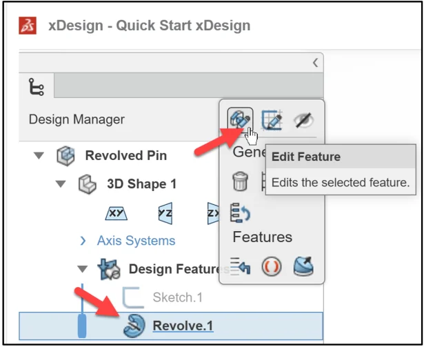 Note: To edit an existing feature, click the feature in the Design Manager, select Edit Feature in the Context toolbar.