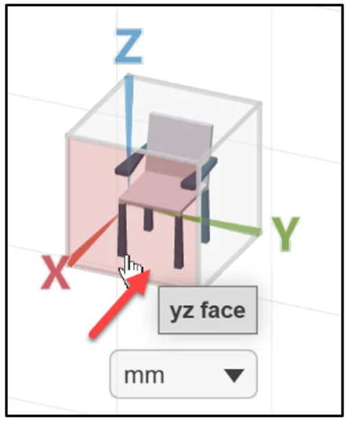Click the yz face in the Triad as illustrated.
