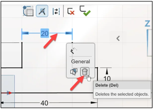 Note: To delete a dimension, click the leader line of the dimension. Click Delete from the General Context toolbar.