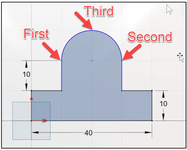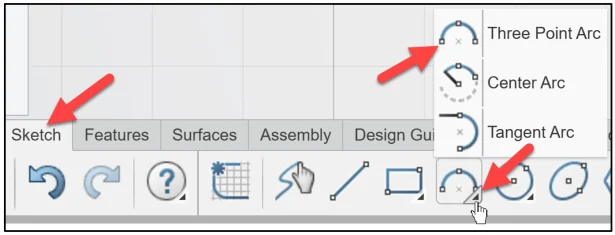 Click Three Point Arc from the Action bar.
