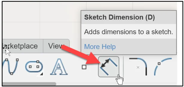 Click Sketch Dimension from the Action bar. View the Sketch Dimension icon.