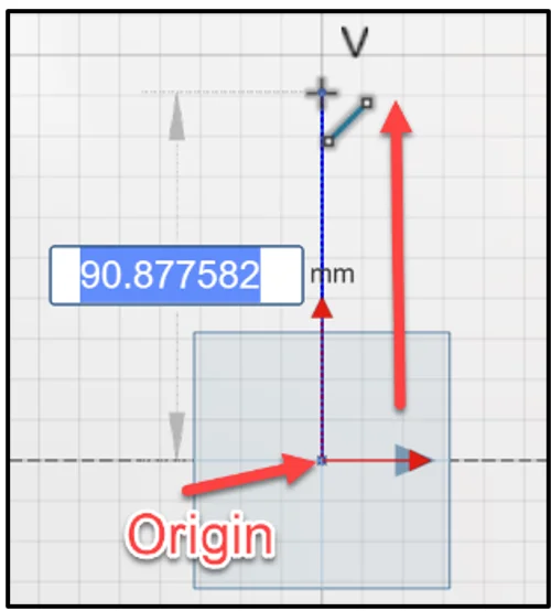 Click a point approximately 90mm. A V (Vertical constraint) is displayed during the sketch process.